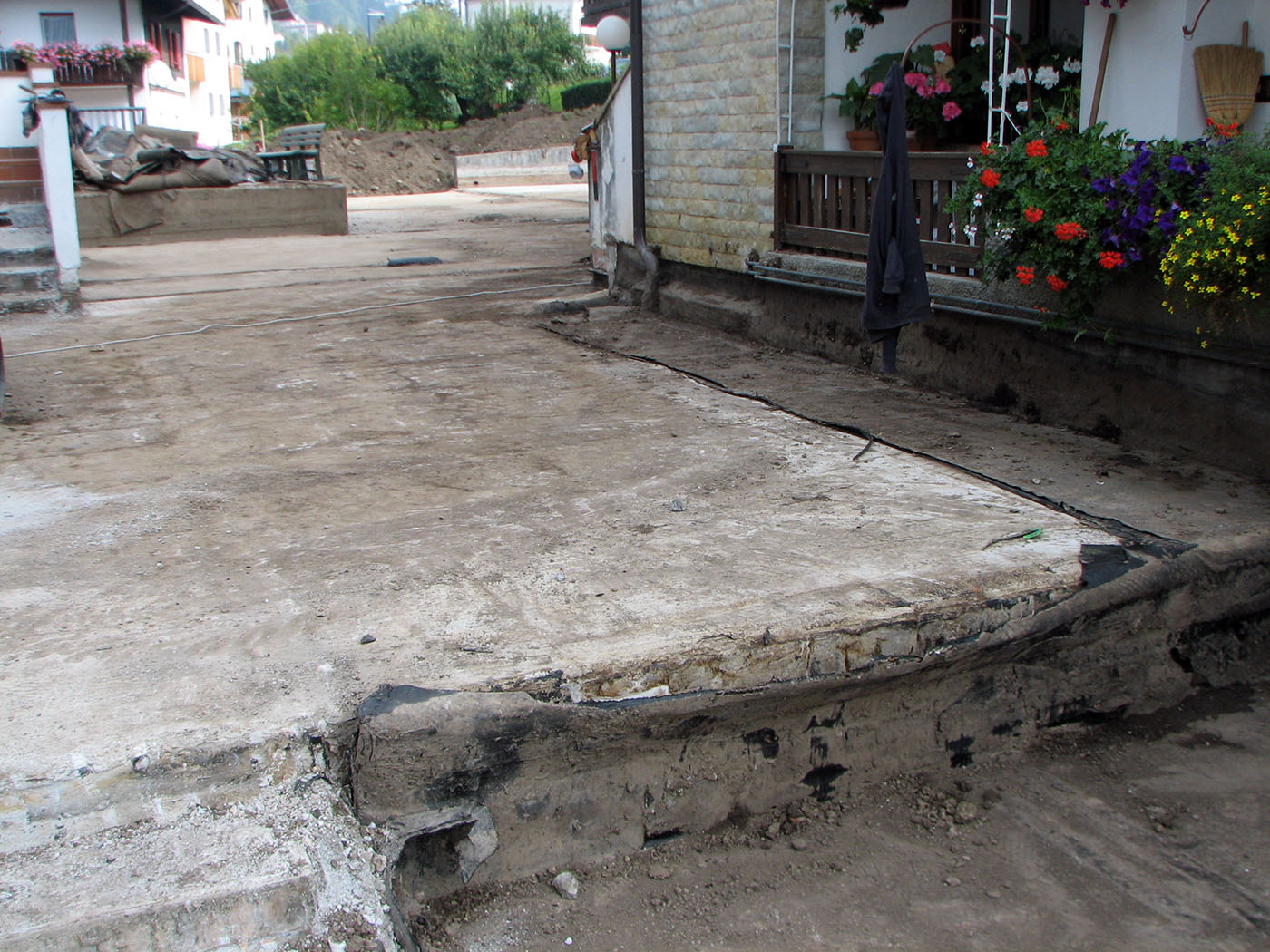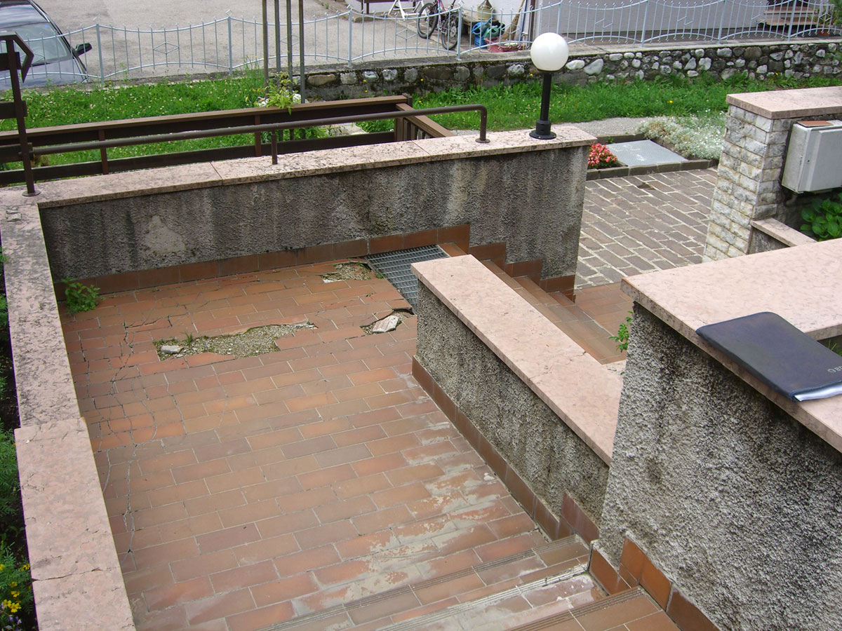 È una situazione comune in montagna: un camminamento con sottostante locale interrato, soggetto ad infiltrazioni.