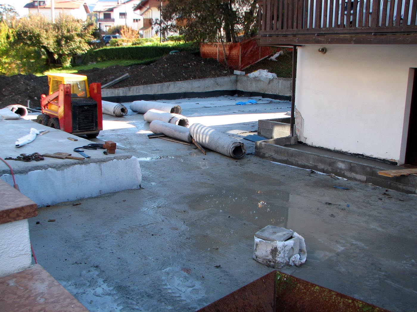 Abbiamo rimosso completamente le pavimentazioni e le aree verdi, con particolare cura nell’asportazione del materiale, per consentire il risvolto delle guaine fino al di sotto del solaio.